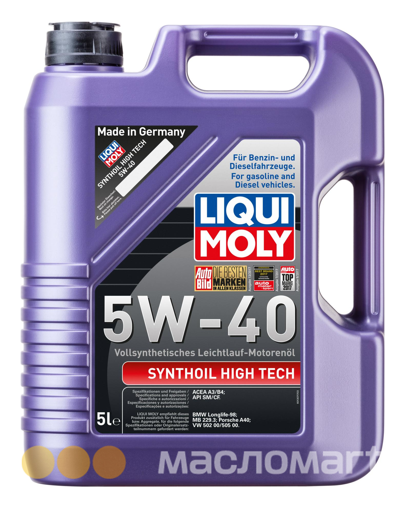 Synthoil High Tech 5W-40 полностью синтетическое низковязкое моторное масло для всесезонного применения в двигателях легковых автомобилей. Оптимально подходит для многоклапанных и турбированных двигателей. Масло полностью соответствует требованиям современных концепций двигателестроения.