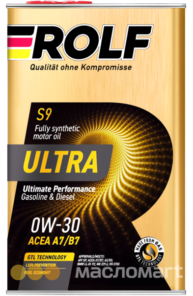 Полностью синтетическое моторное масло «Rolf Ultra SAE 0W-30 ACEA A7/B7 API SP» изготовлено с использованием высококачественных синтетических базовых масел (GTL + PAO) и современного многофункционального пакета присадок, что гарантирует легкий запуск двигателя при низких температурах, превосходную защиту двигателя от износа, препятствует образованию отложений, обеспечивая его максимальную мощность и производительность в любых условиях эксплуатации. Обеспечивает улучшенную защиту от преждевременного воспламенения топливной смеси в цилиндре (LSPI), отвечает повышенным требованиям к экономии топлива, защите цепи ГРМ от износа и противодействию образования нагара на поршнях.