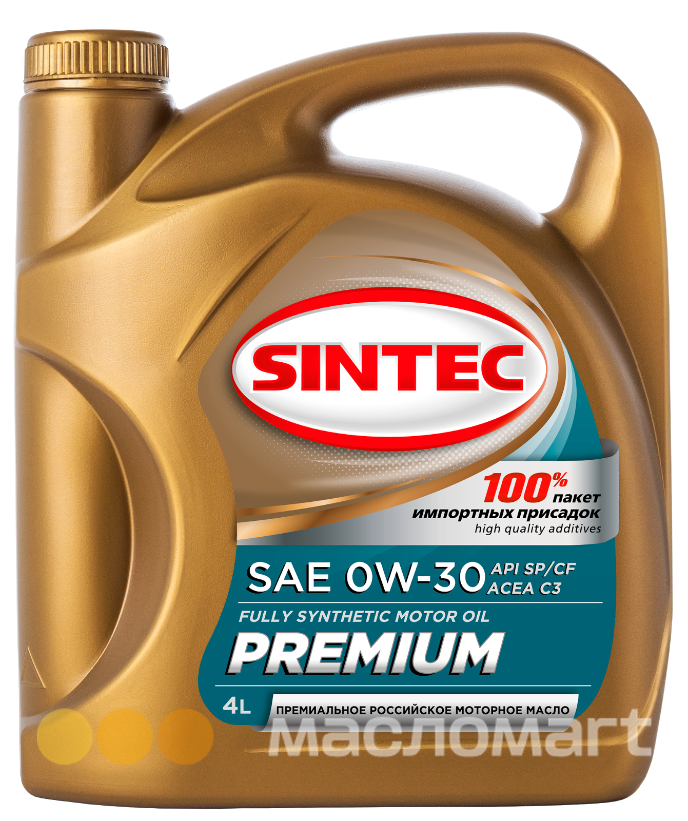 Синтетическое моторное масло «SINTEC Premium SAE 0W-30 API SP/CF ACEA C3» производится на основе смеси высококачественных синтетических базовых масел и высокоэффективного многофункционального пакета присадок. Синтетическая базовая основа из масел гидрокрекинга, имеющих низкую испаряемость,высокие индекс вязкости и термоокислительную стабильность, дополнительно усилена олиальфаолефинами, обеспечивающими отличную текучесть при отрицательных температурах.