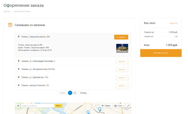 6.Выберите магазин для самовывоза