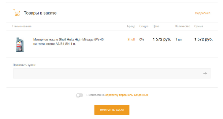 8.Нажмите на кнопку "Я согласен на обработку данных" и "Оформить заказ"